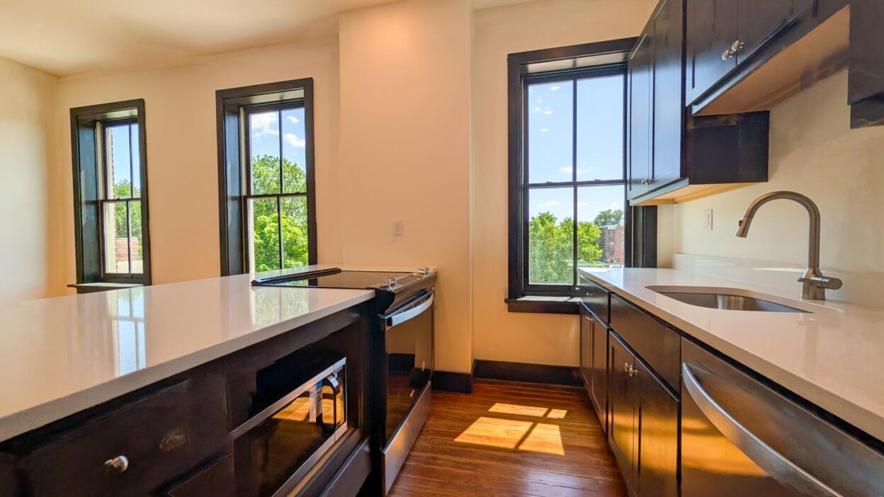 South Side Spaces acquired 2831 Chippewa in 2017. Its most immediate stabilization needs were addressed, including a new roof, gutters, broken windows boarded up, and spot tuckpointing. Over the next few years, neighboring buildings were renovated, and predevelopment work began. Construction started in late 2024 and was completed in June 2025. The second and third floors were converted into eight residential spaces, and the first floor now consists of two retail storefronts that can also function as live/work spaces. The project utilized historic tax credits and complies with the National Park Service standards for history buildings.